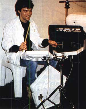 Boehm bot zu den Digital Drums auch Pads an, die über optionale Triggereingänge angeschlossen wurden. Auf dem Bild sehen die Pads ziemlich labil aus und konnten sich deswegen wohl auch nicht durchsetzen.